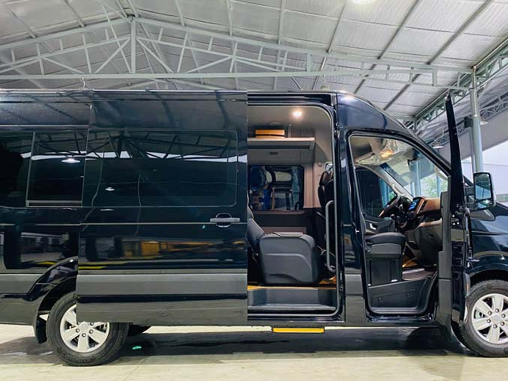Dàn xe đời mới, nội thất sạch đẹp: Các dòng xe như Ford Transit, Hyundai Solati, Toyota Hiace được bảo dưỡng định kỳ, trang bị đầy đủ tiện nghi – điều hòa mát lạnh, ghế da êm ái, khoang hành lý rộng.